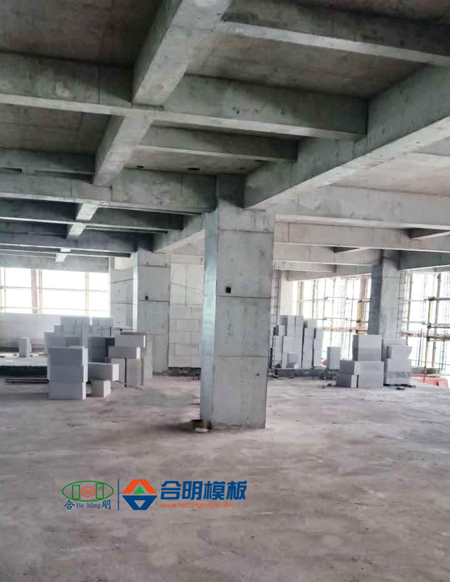 使用合明覆膜板脫模后墻體平整、潔凈、光滑