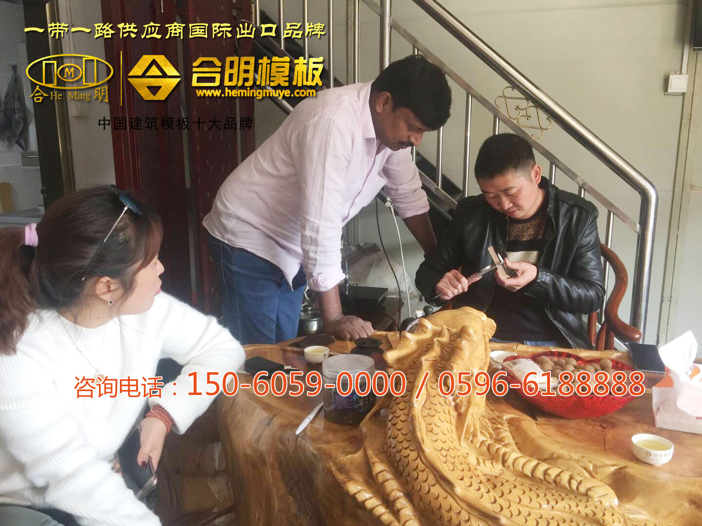 本次,印度建筑材料貿易商慕名來訪,一方面全面考察合明模板的生產實力,一方面洽商合明模板在印度的經銷代理。據悉,合明模板目前已經和海外近50個國家建立經銷合作關系。