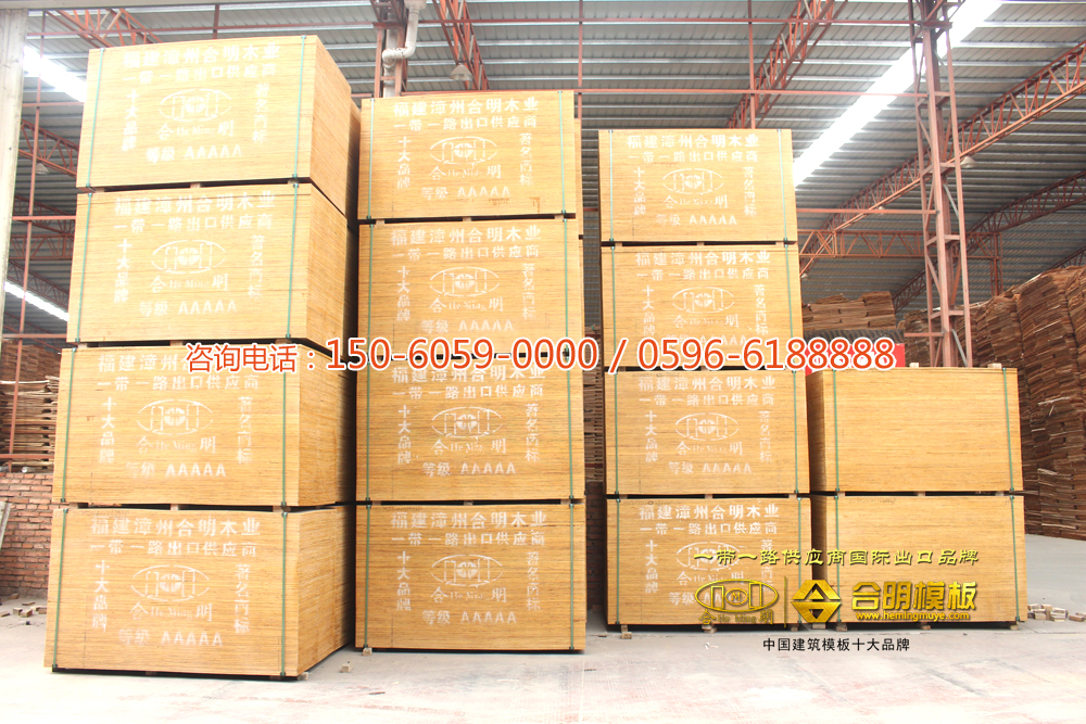 合明旗下設營銷中心、國際事業部、物流園、原木貿易公司、原木旋切廠、曬板場、膠水廠、方木加工廠等建筑模板生產附屬機構,踏實穩步經營,合明模板通過ISO9001質量管理體系,連續多年獲得納稅大戶稱號、漳州市知名品牌、守合同重信用單位等等幾十項認證榮譽。”