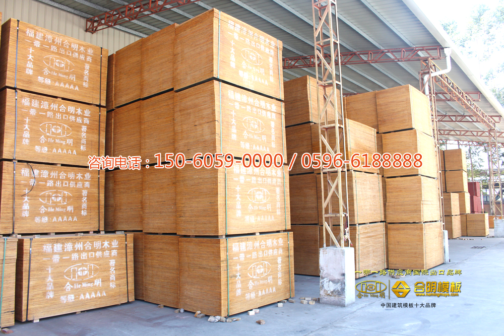 合明旗下設營銷中心、國際事業部、物流園、原木貿易公司、原木旋切廠、曬板場、膠水廠、方木加工廠等建筑模板生產附屬機構,踏實穩步經營,合明模板通過ISO9001質量管理體系,連續多年獲得納稅大戶稱號、漳州市知名品牌、守合同重信用單位等等幾十項認證榮譽。”