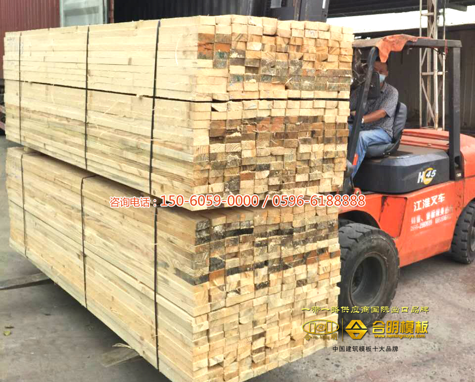 合明建筑木方均選用新鮮筆直少結疤的海外購進的原木為原材料,精心割據而成,讓木方承受壓力的強度和周轉次數均到達標準。合明建筑木方可搭配合明模板發車,節省運費。