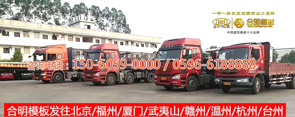 今日合明模板共發(fā)貨27車,分別發(fā)到北京通州、福州晉安、廈門同安、廈門翔安、廈門集美、漳州龍海、泉州、晉江、武夷山、贛州興國、南昌、溫州瑞安、杭州西湖、杭州建德、杭州下沙、臺州臨海、臺州仙居、紹興等地區(qū)工地。