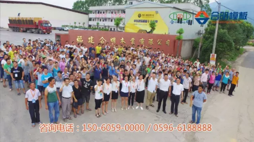 合明旗下設營銷中心、國際事業部、物流園、原木貿易公司、原木旋切廠、曬板場、膠水廠、方木加工廠等建筑模板生產附屬機構,踏實穩步經營,合明模板通過ISO9001質量管理體系,連續多年獲得納稅大戶稱號、漳州市知名品牌、守合同重信用單位等等幾十項認證榮譽。”