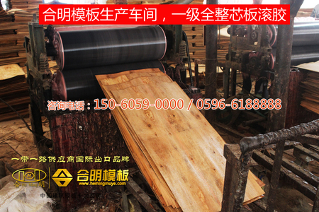 合明模板只用一級材料做芯板,合明的芯板供應商都很固定,一般都是合作好幾年的原木旋切廠,而且這些原木旋切廠很多都是只跟合明合作的,刨出來的一級芯板全部賣給合明,二級、三級板才賣給其他膠合板廠。