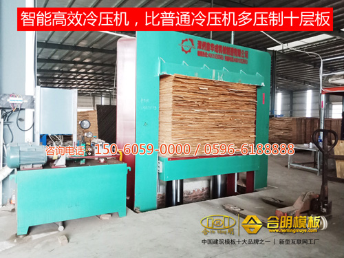 合明熱壓機是全國領先新型熱壓機,可根據不同種類模板進行各種高溫熱壓,熱壓時間超長,一般覆膜板130度以上熱壓,高脂覆膜板150度超高溫熱壓,熱壓好的模板最多可周轉38次。