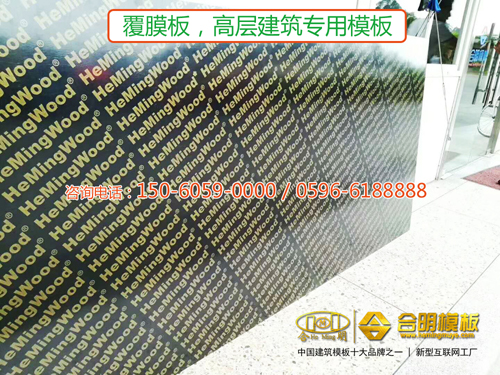 合明覆膜板板面平整耐磨,脫模后墻面整潔美觀,周轉10次以上,深受高層建筑以及酒店、辦公樓、住宅樓等需要裝修的建筑青睞。
