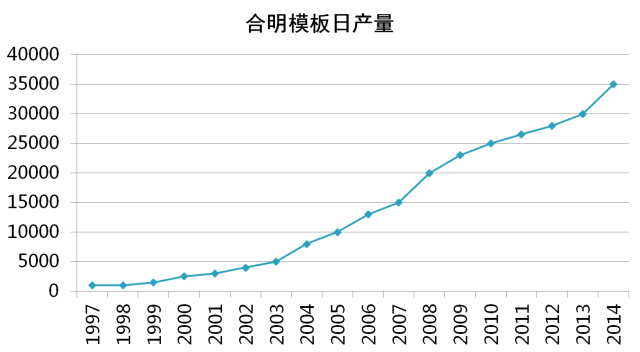 合明模板開始出口馬來西亞等東南亞一帶,合明模板日產(chǎn)量達25000張。