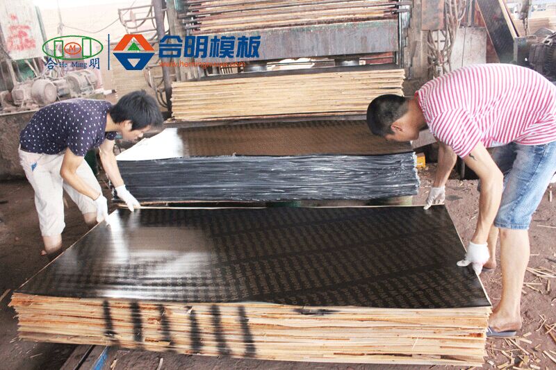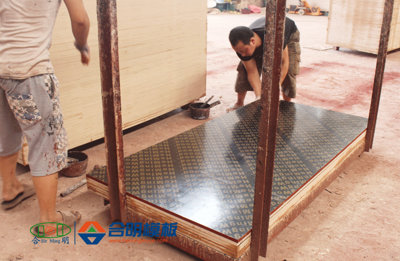 8、磨邊,模板邊緣涂防腐材料,噴制合明牌專屬商標,打包入庫。
