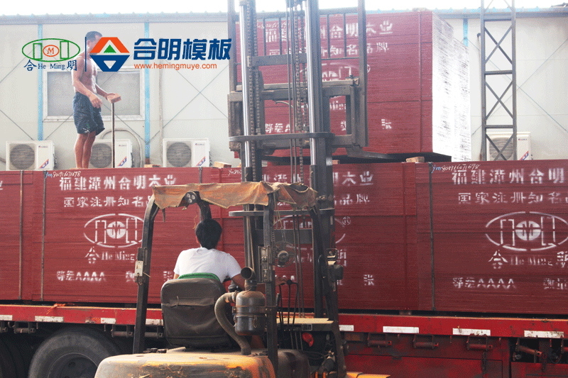 今日,合明模板出貨廣東揭陽、深圳,江蘇徐州,浙江溫州,共16車。其中出貨廣東揭陽的為普通紅板,出貨深圳、徐州、溫州的均為1.5mm英文覆膜板。