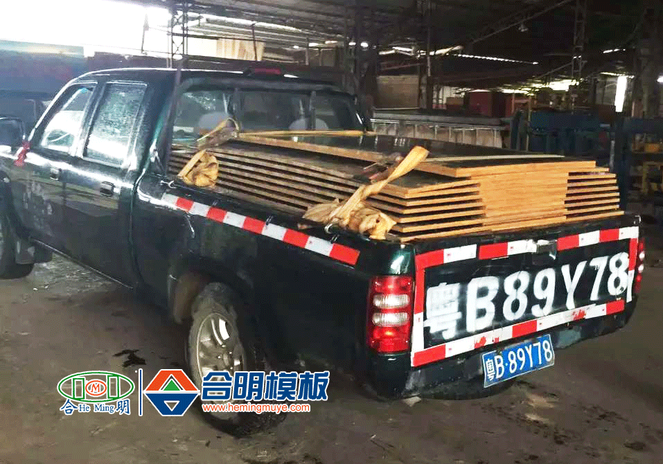 近日,廣東深圳市廖先生自駕皮卡車至合明生產基地參觀考察,并取樣板回去工地試驗。這位客戶是因同行朋友向其推薦合明模板才到合明進行考察的。來合明后覺得合明模板平整美觀,公司也規(guī)范,因為自己對模板質量要求很高,特跟合明購買英文覆膜板40張至工地進行試用。