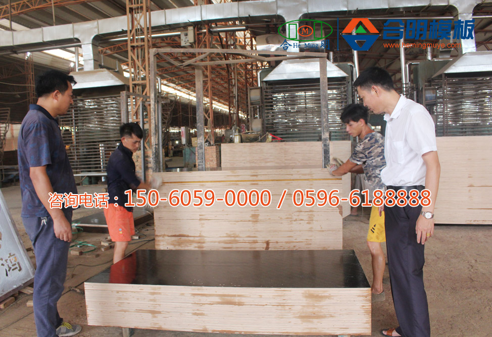 經過翻板工藝后的合明模板,還有經過多重成品檢測,車間主任和管理人員必須保證每一批合明模板等高等寬等長,品種外觀合格。只有在誤差允許范圍內的合明建筑模板才能噴上合明專屬的品牌標志,裝運發貨到世界各地。
