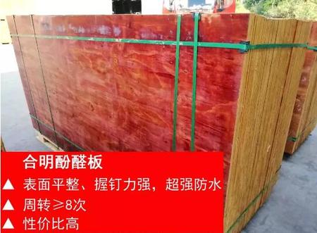合明酚醛板集合了酚醛板中的優點,表面平整、內心堅實、防水防沙、周轉次數高等,不僅如此,合明酚醛板在這些基礎上精益求精,性能升級。自制的酚醛膠水滾均勻,大大增強模板的防水性能;全整一級芯板以及松木面板更造就了合明酚醛板8次以上的周轉次數。合明酚醛板密實堅硬,風吹日曬雨淋一個月不變形不開膠。