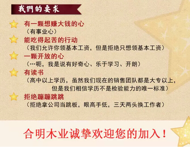 合明木業(yè)高薪誠(chéng)聘啦!想要了解合明木業(yè)這家企業(yè),以及崗位要求、薪資待遇,請(qǐng)往下看起~
