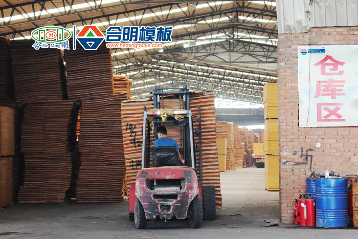 合明大倉庫位于鰲浦生產基地中,可容納800多萬張單板,供合明模板一個月生產。平均每天有50多萬張的單板進出倉庫。