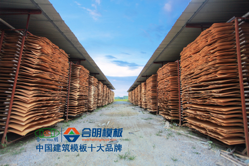 曬板場翻曬購入的單板,單板要曬到濕度為12-14度之間方可收入倉庫,合明這一濕度標準比同行企業要嚴格。工人們每天要巡場,不僅檢查單板是否曬干,還要再次挑出二級、三級板,保證原材料的一級品質。合明曬板場把控合明模板質量第一關。