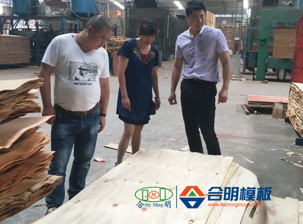 6、看該廠有無足夠的水泥地坪(至少20畝以上)用來翻曬所收購木皮,場地有無翻曬木皮及工人,一般廠家購來的木皮含水分在12-25之間,較多廠家由于考慮場地、資金、成本等因素,就直接生產,而部分廠家則把木皮用人工在外面水泥地坪上再翻曬一次,使每張木皮含水分在8-10之間,這樣方法生產的模板更加耐用,同時同樣規格及厚度的模板裝半掛車,曬與不曬所生產出來的模板噸位能夠相差1-2噸左右。1-2噸是水,聽起來毛骨悚然,仔細想想陰雨時節的衛生紙的吸水率有多沉,你就會明白。合明模板擁有200畝曬板場,對單板濕度控制嚴格。