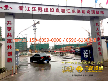 浙江東冠建設承建直塘江東側地塊項目部工程,位于浙江紹興市,該工程采用框架結構,全程施工指定合明建筑模板及其合明建筑方木。